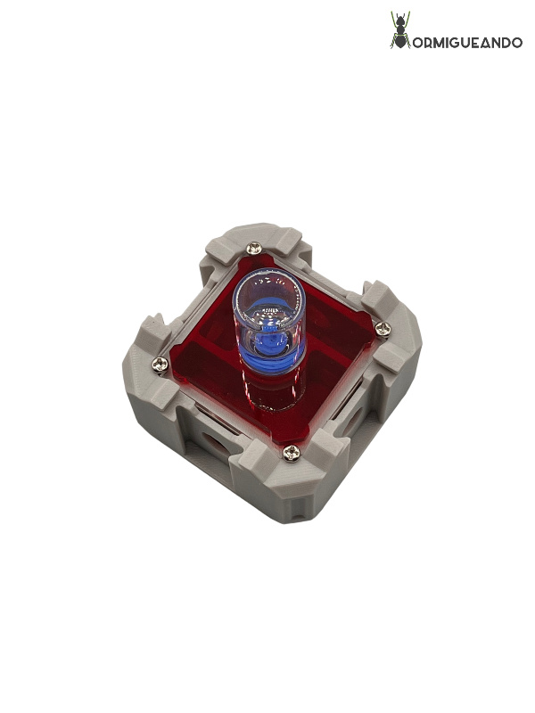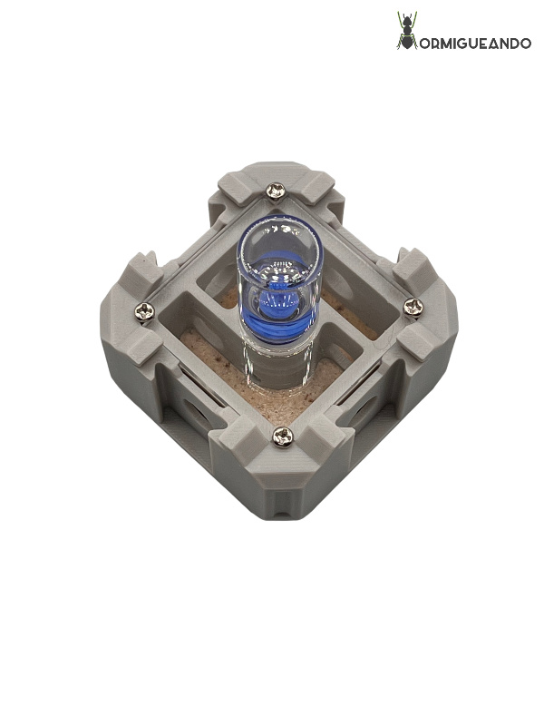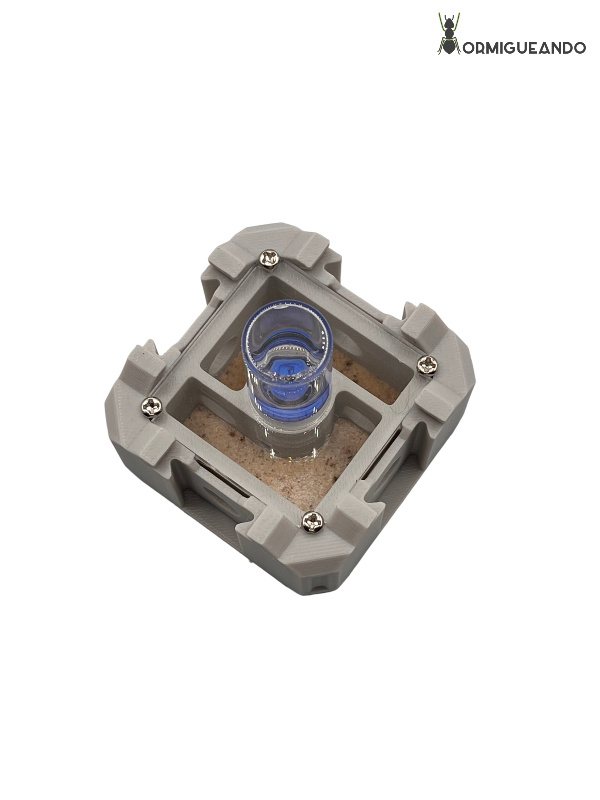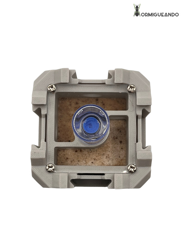 - Depósito superior de 6 ml: Fácil de rellenar desde arriba. Proporciona humedad estable durante días (incluso semanas, según la especie y el tamaño de la colonia).